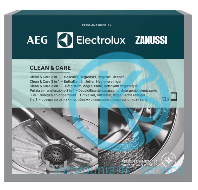 Καθαριστικό πλυντηρίου ρούχων πιάτων Clean & Care 12 τεμάχια 3 in 1